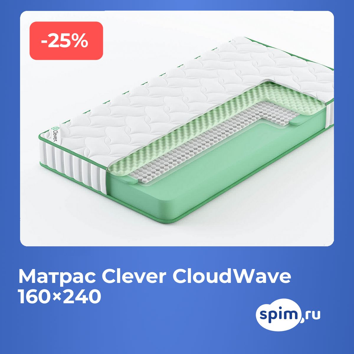 УходДля продления срока службы матраса рекомендуется использовать защитный наматрасник (не входит в комплект), который поможет сохранить чистоту и свежесть чехла. О производителеМатрасы Clever изготавливаются в России и сочетают качественные наполнители, современные технологии и практичный подход к комфорту сна. Бренд предлагает надёжные решения для ежедневного использования.