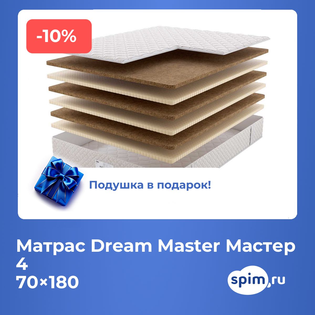 При покупке любого матраса, кроме моделей из серий "Топпер", вы получите в подарок: