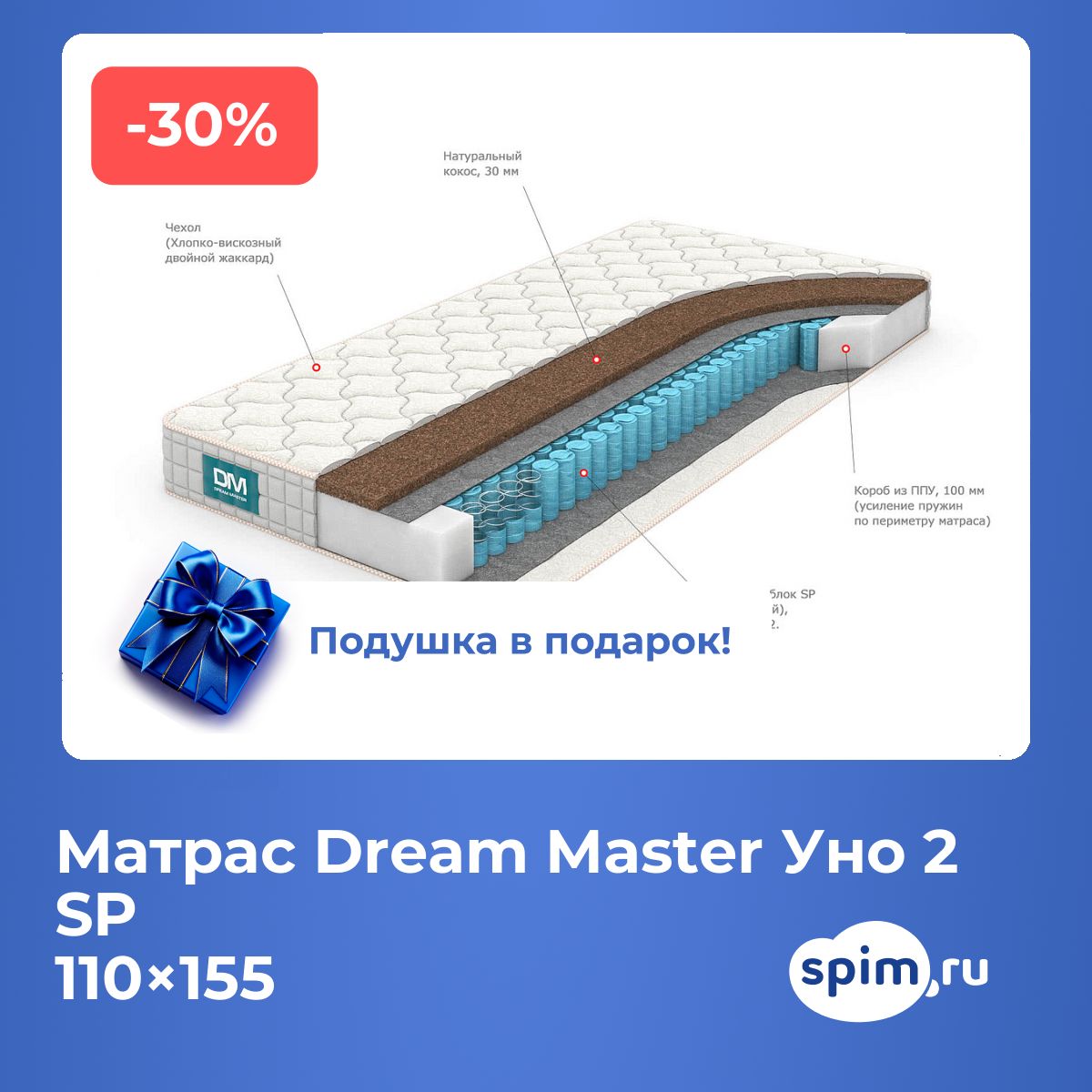 При покупке любого матраса, кроме моделей из серий "Топпер", вы получите в подарок: